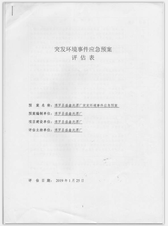 已制訂《博羅縣盛鑫洗漂廠(chǎng)環(huán)境風(fēng)險(xiǎn)評(píng)估報(bào)告》,并于2019年1月25日上報(bào)博羅縣環(huán)境保護(hù)局備案;