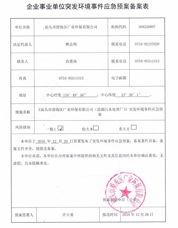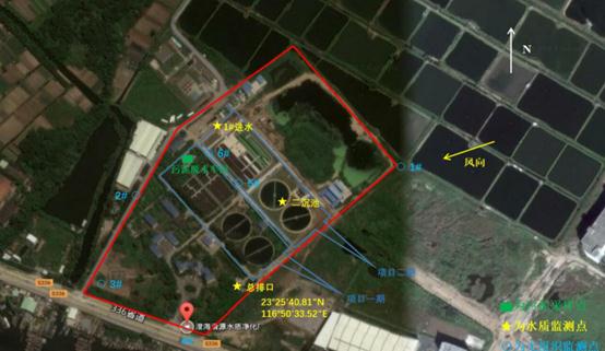 東經(jīng):116°49′56″ 北緯:23°26′1″ 總排放口(紫外線消毒池末端) |